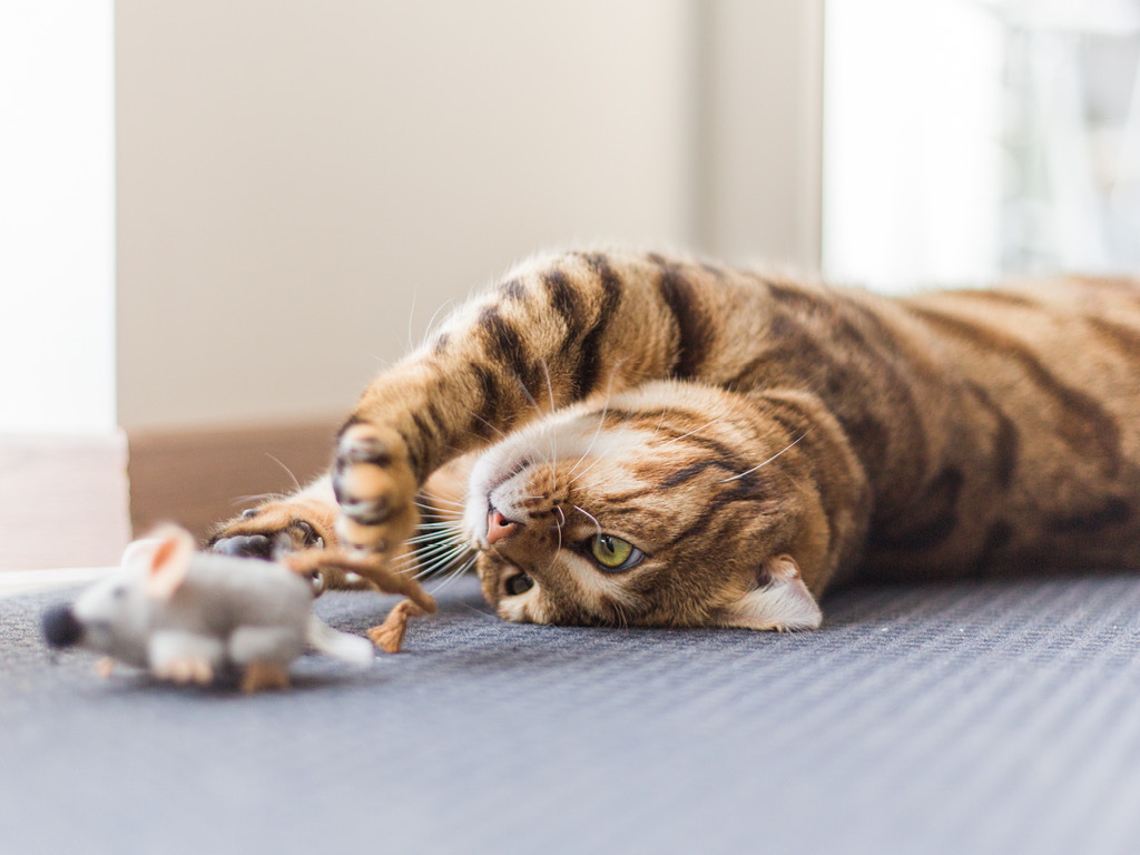 - Использование игрушек, имитирующих движения добычи (мышки на верёвке или лазерные указки) помогает стимулировать охотничьи навыки;